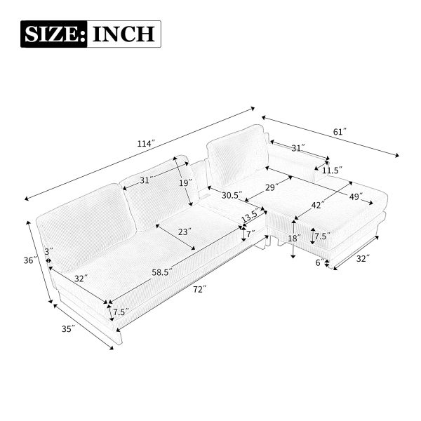 110″ L-Shape Convertible Sectional Sofa with Ottoman & Storage Pockets Free Shipping Big Sale