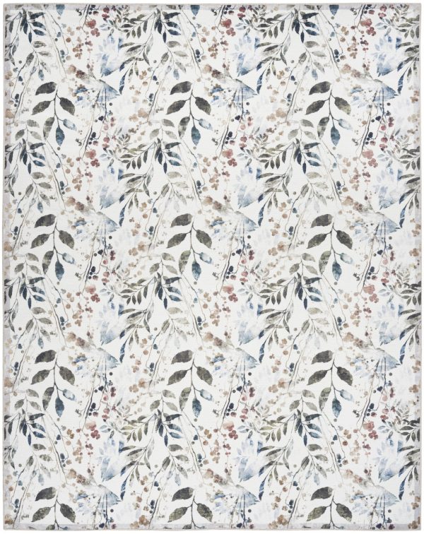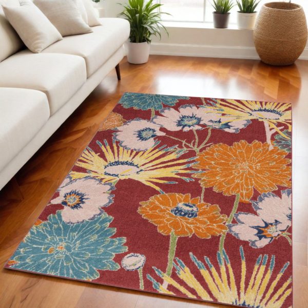 5′ x 7′ Washable Non-Skid Area Rug with Ivory Green & Red Floral Design for Stylish Decor Discounts