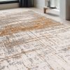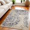 - machine-made area rug in contemporary style crafted from polypropylene in gray and ivory color palette.