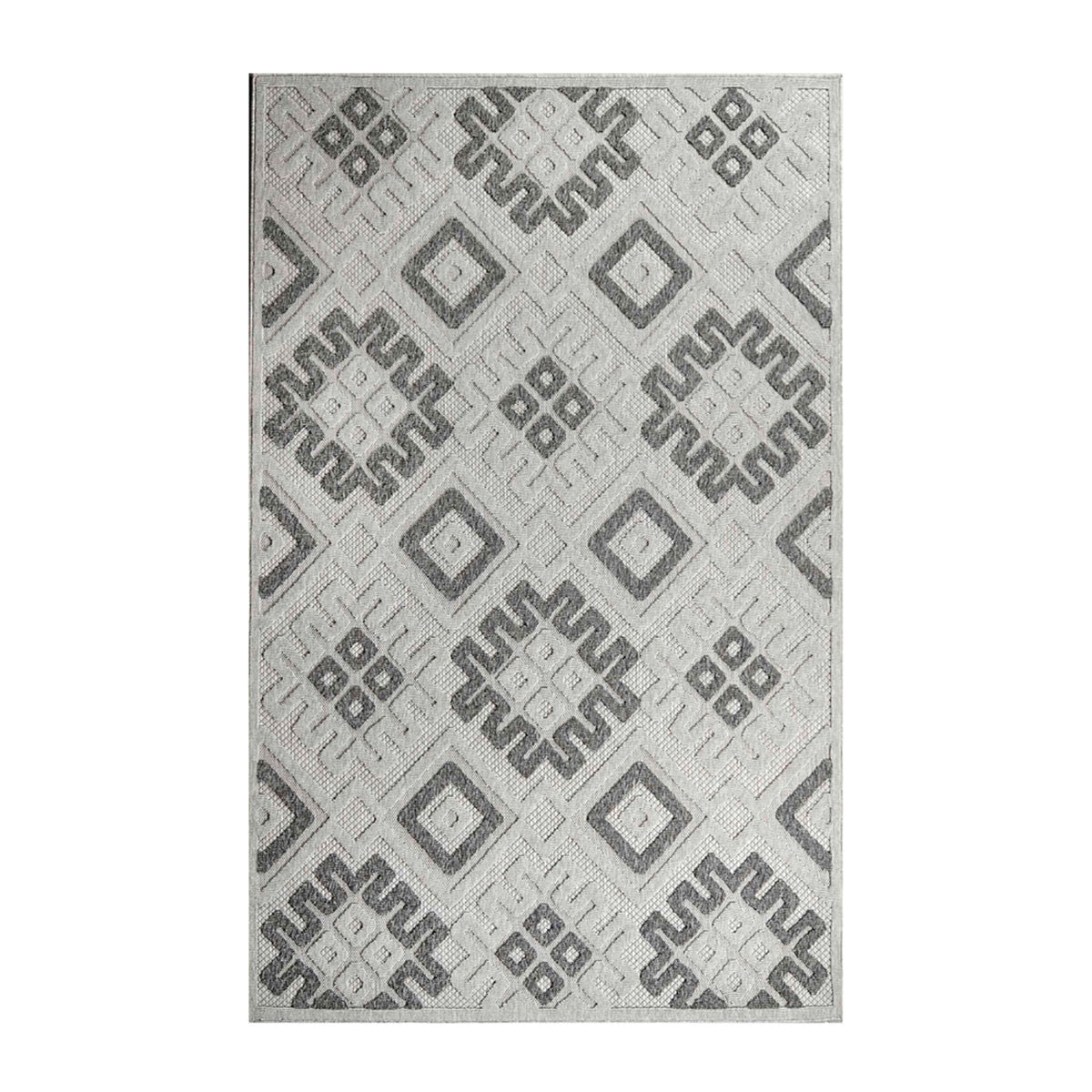 Add great coloration and comfortable texture to your space with this 5′ x 7′ slate geometric stain resistant non skid indoor outdoor area rug. This rectangle shaped rug features a geometric design in slate to give it visual interest. A classic shape marries with good looking design for your space Made in Turkey, this rug offers high quality combined with good looking designer sensibilities. Ideal for spaces with kids and pets, this rug is stain resistant to help repel stains and spilled liquids. Place this area rug against a hardwood or tile floor and it will enliven your living space with style and sophistication. 0.24″ H x 62.4″ W x 86.4″ D
