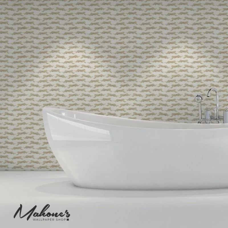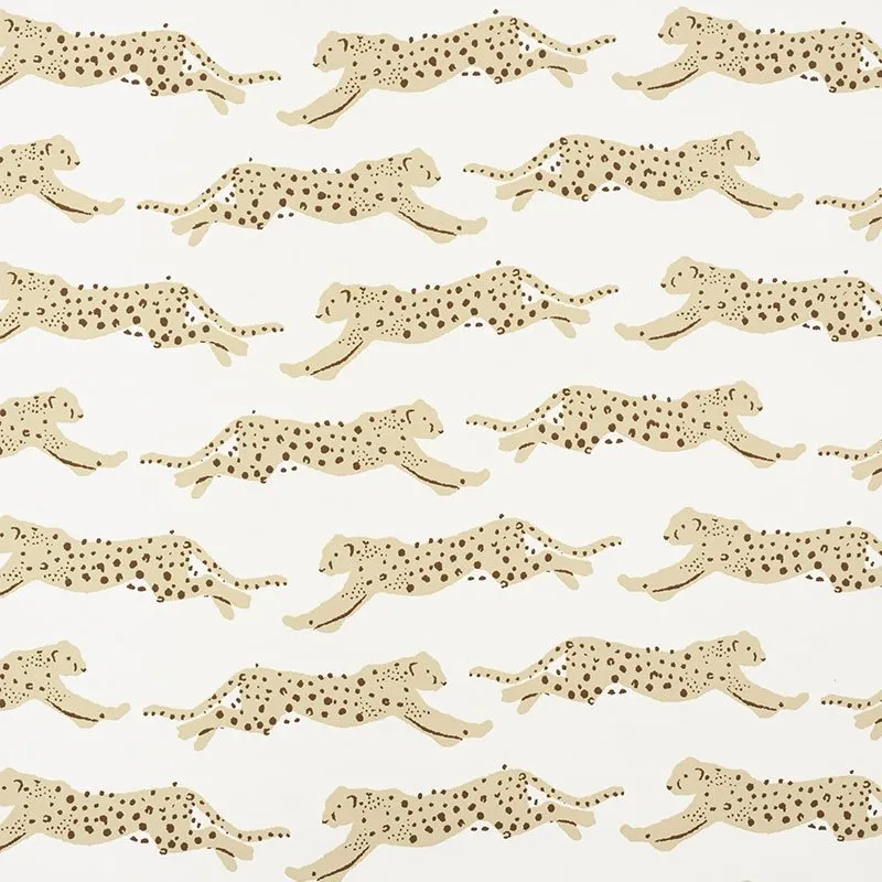 Order Schumacher Wallpaper Item# 5009591 pattern name Leaping Leopards color name Sand from the collection Small-Print Wallpapers. Enjoy this fabulous wallpaper. Sleek, spotted leopards form dynamic stripes in this wildly chic pattern. It’s a lively, figurative design that takes on a different look in each colorway. Also a fabric. Cuttings available always online. Fast Shipping Mahone’s Wallpaper has been family owned in Lynchburg Va since 1969.