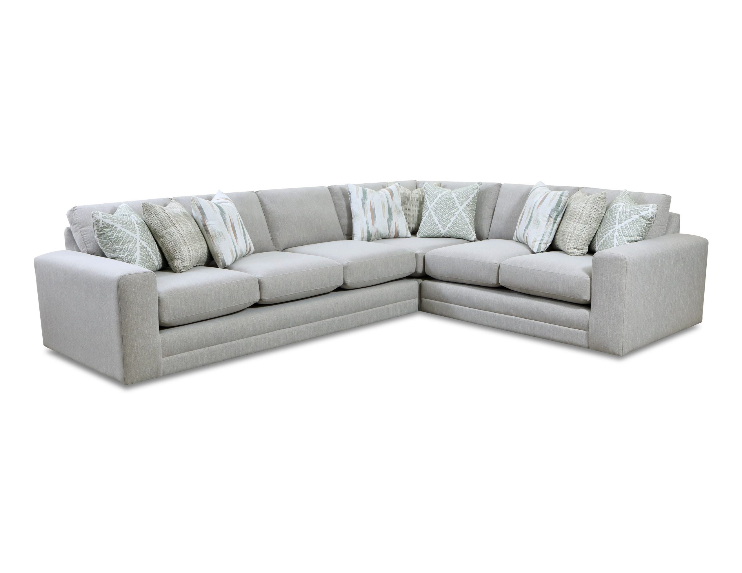 The Charlotte Cremini Sectional features a right-arm facing sofa, a 90 degree corner wedge and a left-arm facing loveseat. With its wide track “party” arms, loose reversible seat and back cushions and transitional design Charlotte Cremini is a mordern design in a transitional pattern of covers. It comes with 3 pairs of contrasting pillows and a elongated kidney pillow. The Charlotte Cremini Sectional is part of our Luxe Living Collection which features fully framed and upholstered outside arms and outside backs, a 1.8 density foam core seat cushion wrapped with HR high resiliency cool gel top and bottom with plush dacron fiber. Luxe Living also features 11 inch thick seat cushions that are zippered, loose and reversible. All back cushions are also loose, zippered and reversible filled with bagged and channeled fiber for softness and comfort. We also complete thorough testing of the seat cores to ensure comfort, consistency and durability.