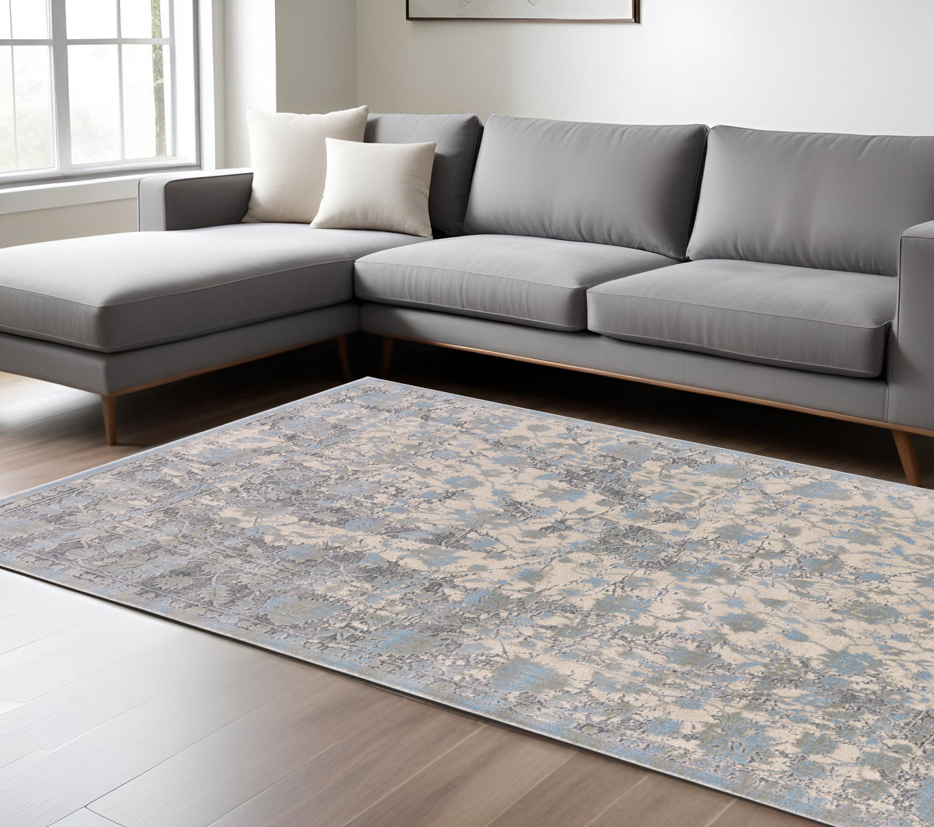 Add great coloration and comfortable texture to your space with this 10-foot x 13-foot ivory taupe and blue abstract power loom worn faded area rug. This rectangle shaped rug features a abstract design that will add a functional and decorative accent to your space. Ideal for spaces with kids and pets, this rug is stain resistant to help repel dirt and spilled liquids. This larger sized rug is ideal to create a focal point or statement piece in your room. 120-inch h x 158-inch w x 0.39-inch d