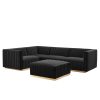Round up the gang and get comfortable while seated on this Belsa velvet sectional. This uber contemporary sectional couch is just what you need for entertaining and hanging out with the whole gang. Its stunningly luxurious beige velvet upholstery is sleek to the touch and easy to care for and maintain, so the sofa retains its lovely look longer. Accents of brushed gold stainless steel on the base and back give the sectional a touch of glam.