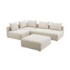 A haven for cozy relaxation, Commix features plush comfort and a clean-lined design. The spacious profile makes an attractive statement in the modern home. Covered in a boucle fabric with a charming nubby texture, this upholstered sectional sofa comes with a solid wood construction and foam padded and duck down cushions for a luxurious sink-in feel. Commix features overstuffed down feather cushions that offer a feeling of relaxation and calming comfort while lounging, making it the perfect addition to the living room, family room, or game room. Made for sprawling out or curling up, Commix beckons you and guests to sit and stay a while. Includes plastic foot glides. Weight Capacity of Each Piece: 331 lbs.