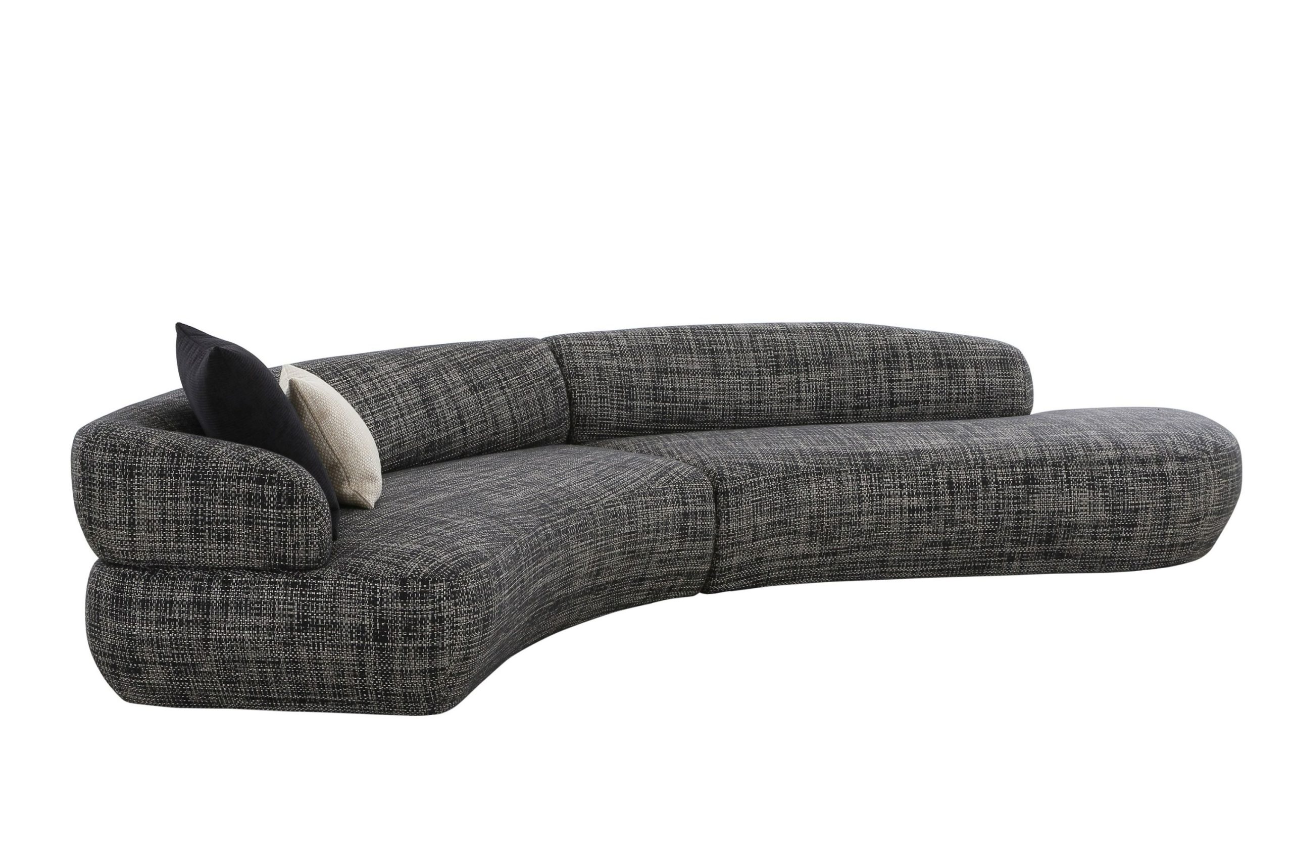 The Divani Casa Lakota Modern Dark Grey Fabric Curved Sectional Sofa offers both style and comfort. This curved 2-piece sectional sofa features a right-facing chaise for lounging. Upholstered in 100% polyester, it boasts a sophisticated color palette of black, cream, and grey variegated . The solid ash and manufactured wood frame ensures durability, while the foam-filled seat and back provide plush support. With its round arms, tight back, and two included toss pillows (one in black and one in cream), this sectional sofa is a chic addition to any living space.