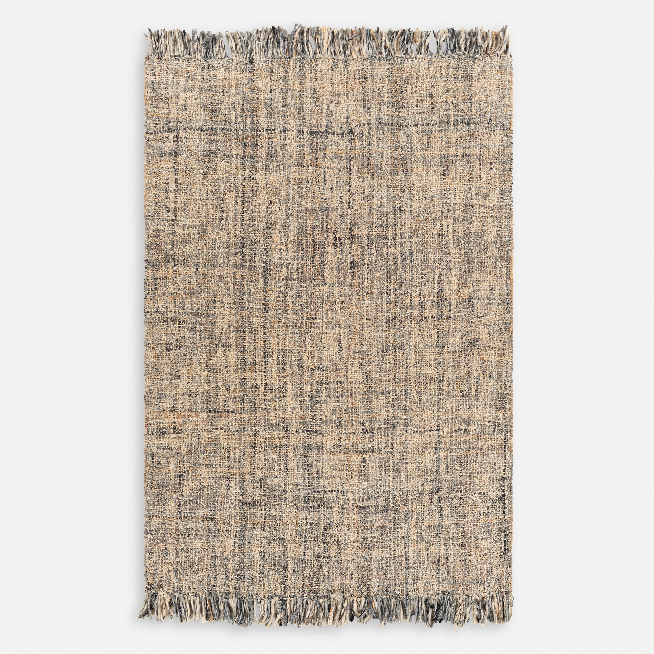 This Hand Woven Rug Features Natural Jute And Undyed Wool In Tones Of Charcoal, Gray, Gray And Tan.