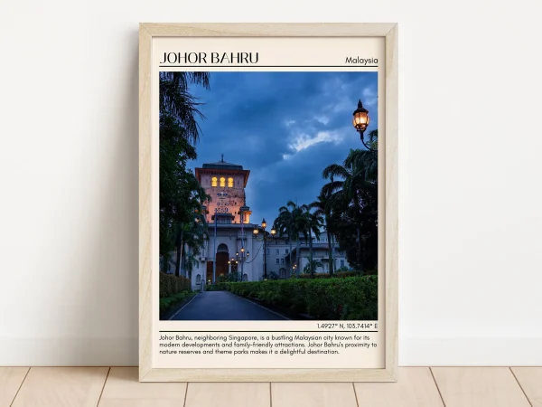 Transform your living space with the lively allure of our Johor Bahru-inspired photo frame. This unique frame, meticulously crafted, reflects the dynamic and multicultural vibrancy of Johor Bahru, making it an exceptional keeper for your beloved moments. A distinctive gift and a stylish decor accent, it’s available in a variety of vibrant colors. Dive into the spirited charm of Johor Bahru—grab your exclusive frame today!