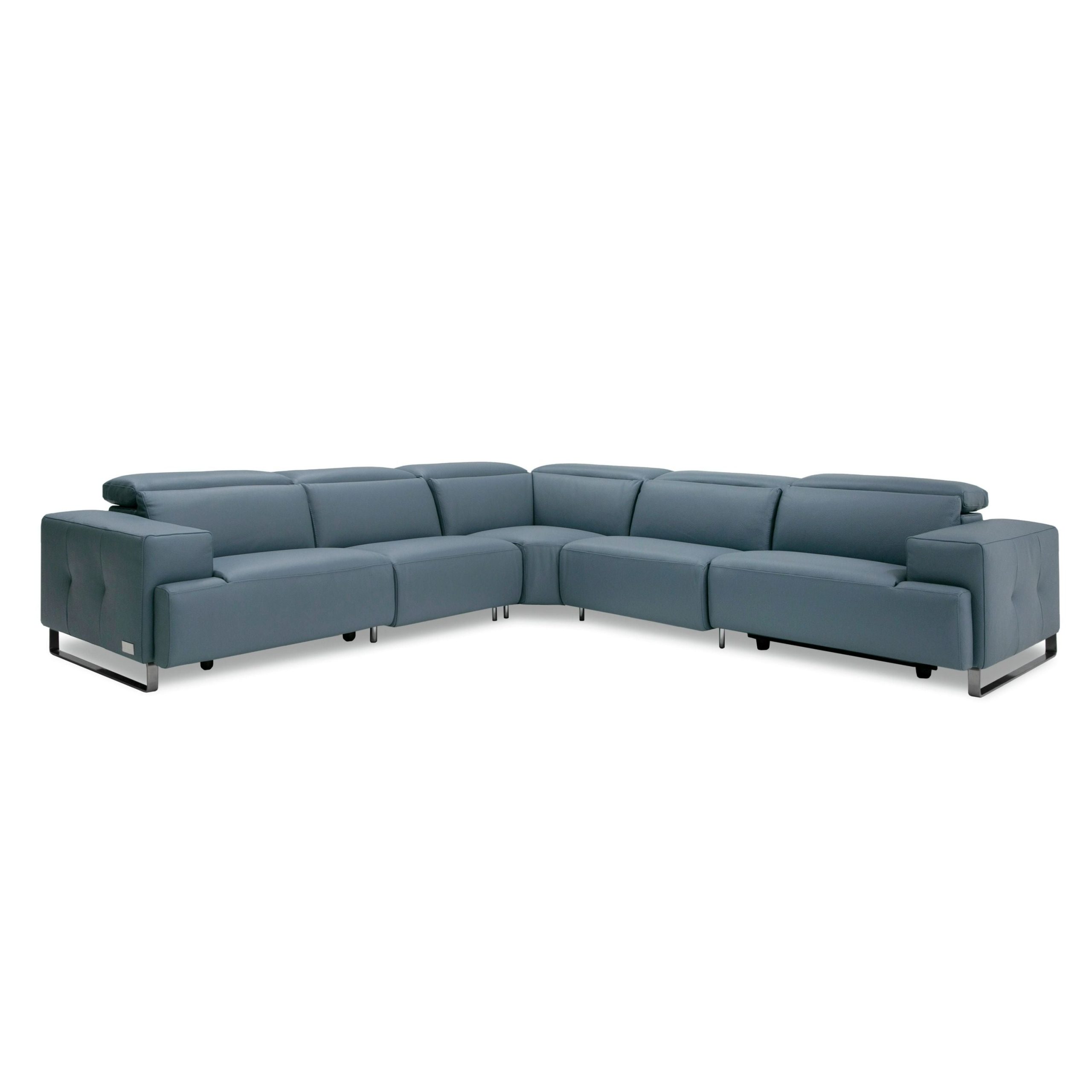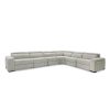 The Sorrento sectional, part of the Coronelli Collezioni collection, is a fantastic sectional, adding a modern charm and comfort convenience to your living room.This large L-shaped sectional features two manual recliners on both the left and right arm seats as well as adjustable headrests. The Sorrento is upholstered in genuine light grey leather, has tuxedo arms on both ends and sports stainless steel legs and trim. The combination of leather and foam seat filling allows you to sink in after a long day. The Sorrento redefines luxury with its contemporary lines and roomy seats. Capable of seating up to six people, it is perfect for entertaining and goes perfectly in a modern or contemporary style home.