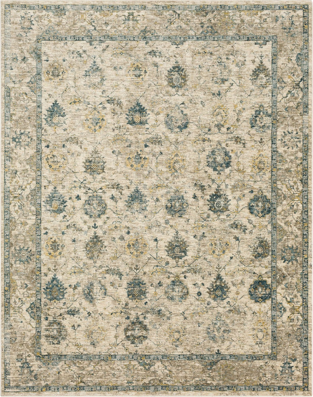 Soft shades of blue complement the predominantly neutral style of Karastan’s Darica Area Rug in Cream. Traditionally inspired palmettes offer an antique aesthetic with this rug’s distressed finish. Ideal for elegant entryways, luxurious living rooms, beautiful bedrooms, opulent offices and more, the designs of the Marash Collection are thoughtfully woven with soft and stain-resistant synthetic yarn. Imported from Turkey, each debut of this collection exudes international flair with a vintage fringed trim along the edges. Available in a spectrum of sizes, this area rug is beautiful as a set or solo.