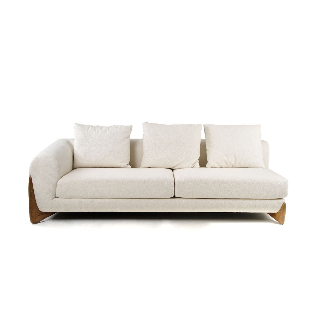 Modrest Fleury – Elegant Cream Fabric L-Shaped Sectional Sofa with Walnut Legs & 5 Plush Pillows Cheap Comfortable