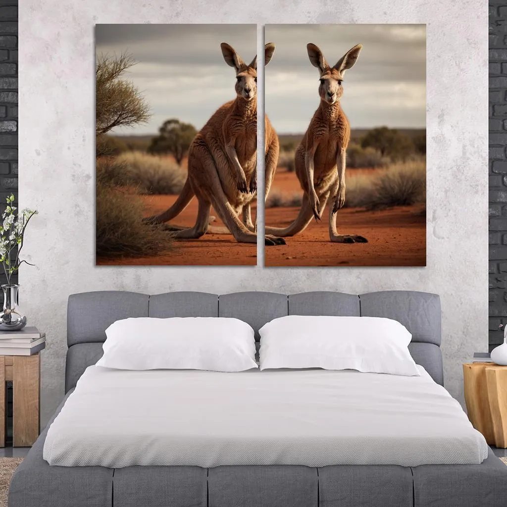 The Quirky Red Kangaroo of the Outback 2 Piece HD Canvas Wall Art