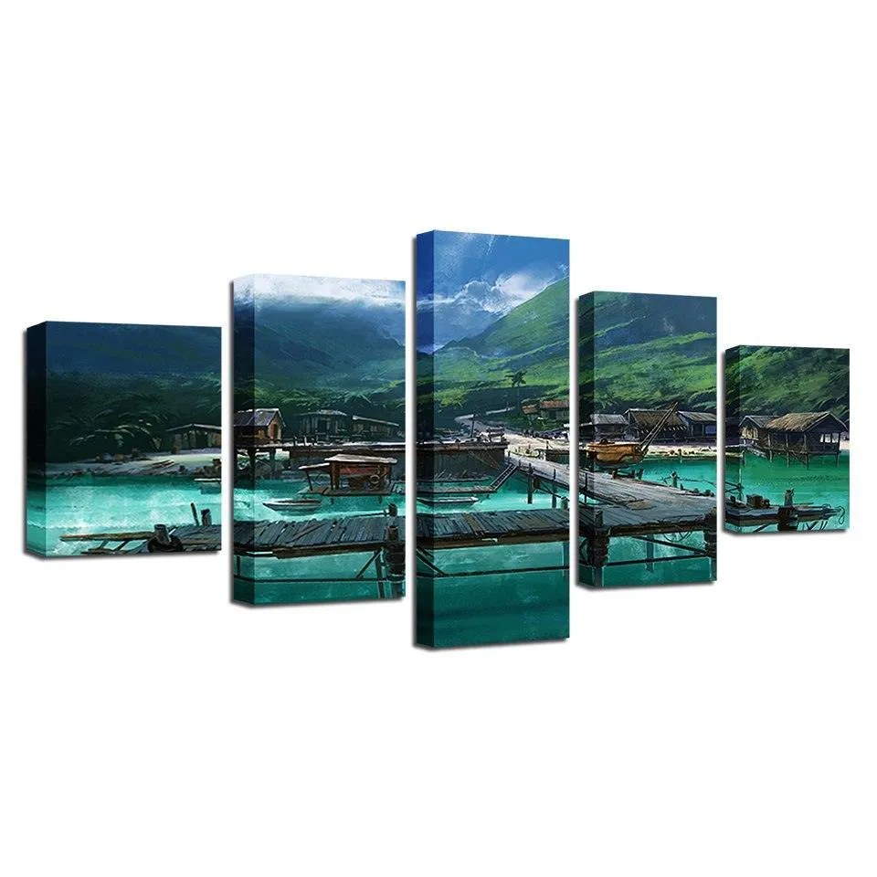 Wooden Bridge 5 Piece HD Multi Panel Canvas Wall Art Frame