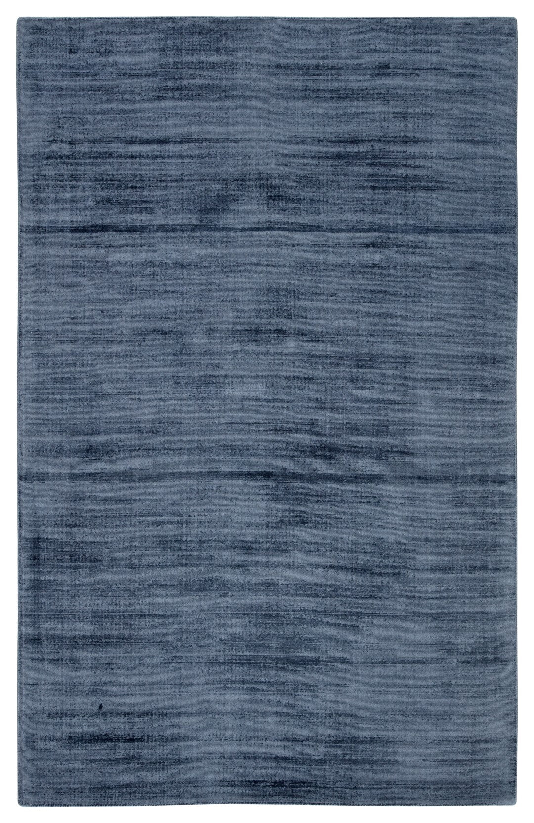 Effortless luxury defines this alluring and stunningly soft hand-loomed viscose area rug. The perfect accent for a glamorous bedroom, this solid blue-gray layer boasts a dazzling luster and artistically distressed design.